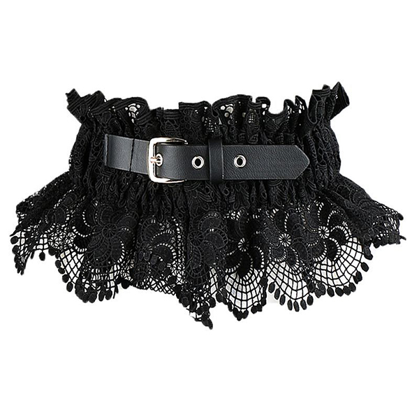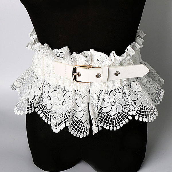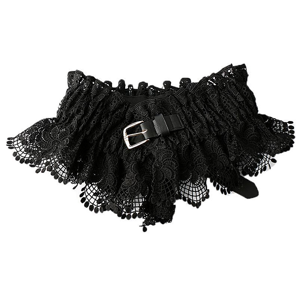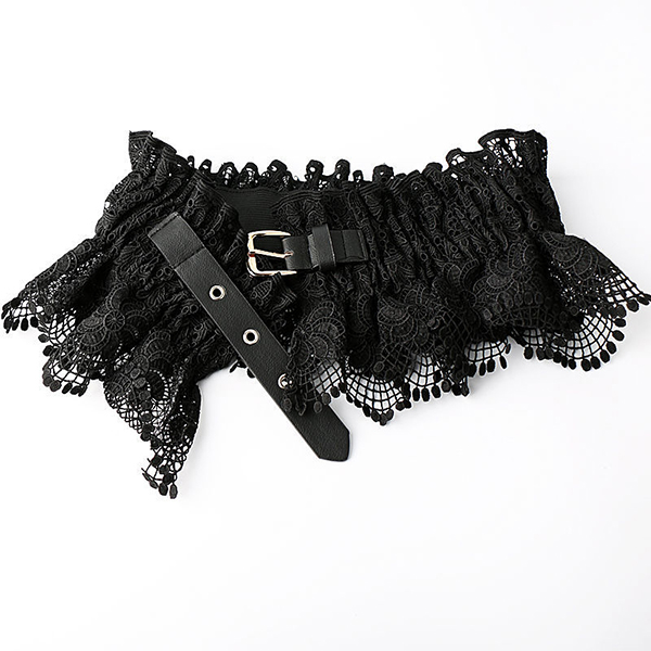 Gothic Boho Black Lace Corset Belt - Ruffled Peplum Waist Cinch