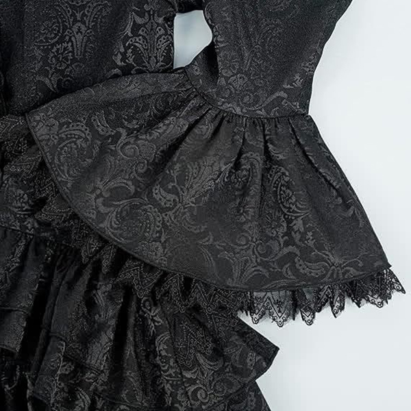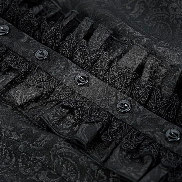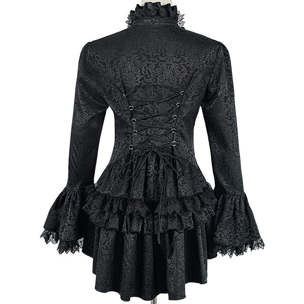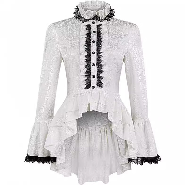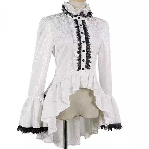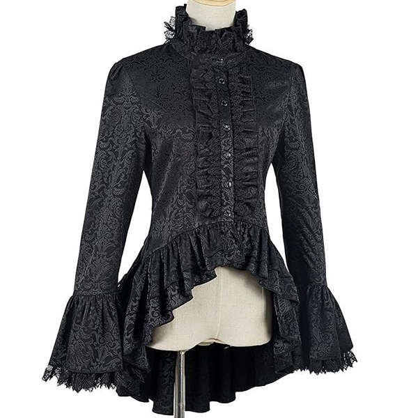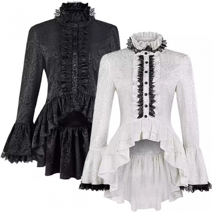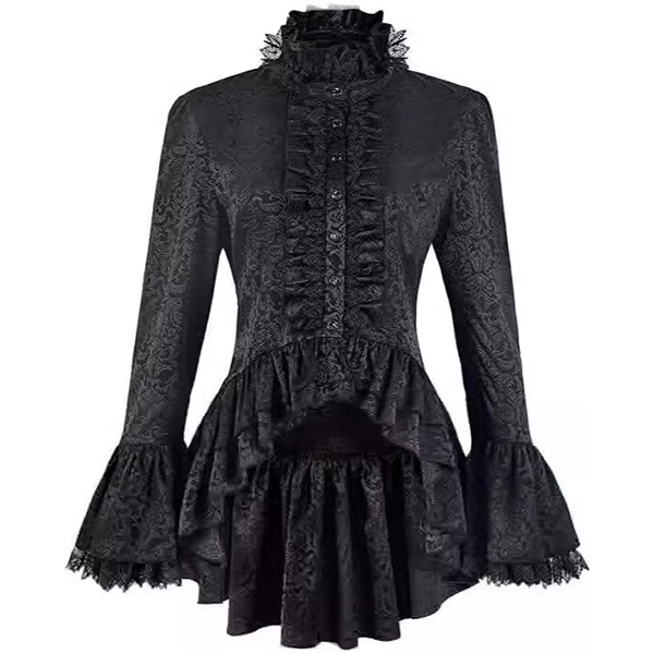 Gothic Medieval Shirt: Stand Collar, Trumpet Sleeves, Lace Detail
