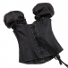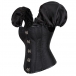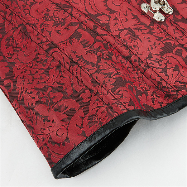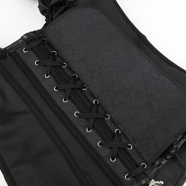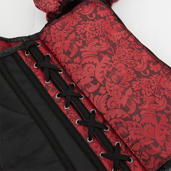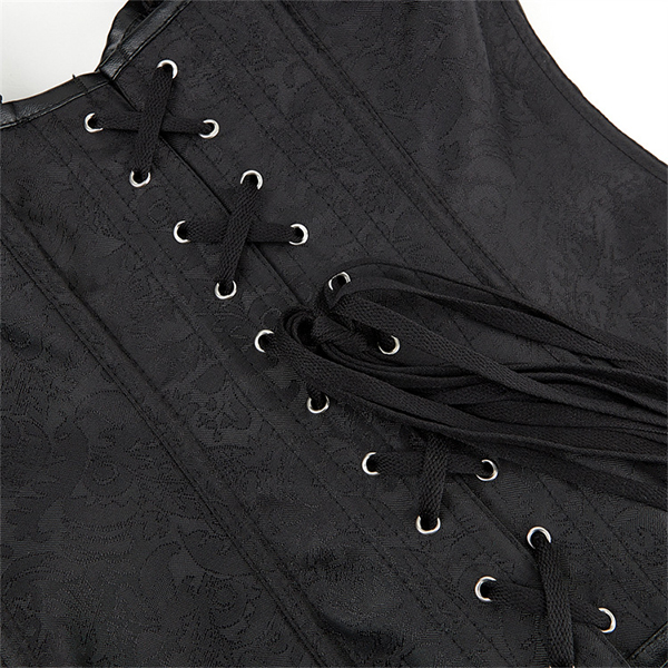 This gothic-style shirt is perfect for creating a gothic-inspired and dramatic outfit. It features a jacquard fabric with puff short sleeves, a sweetheart neckline, front buckle detailing, and a back lace-up corset design, creating a unique and edgy look. We could pair it with high-waisted pants or a skirt and boots for a bold and stylish ensemble.