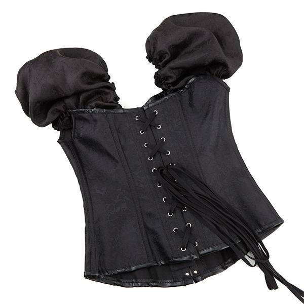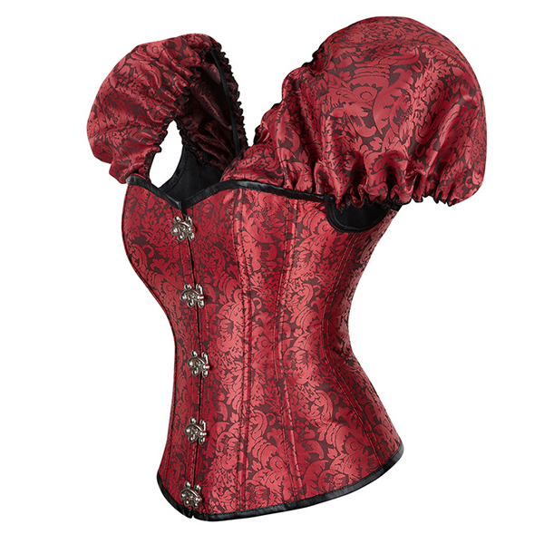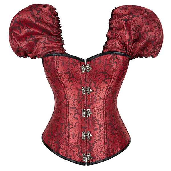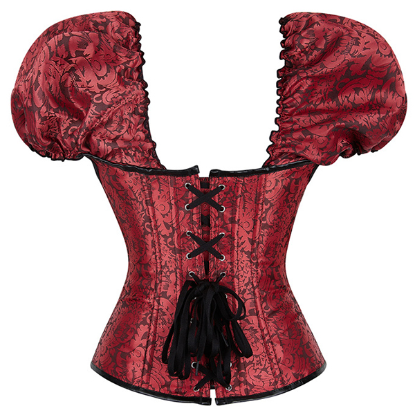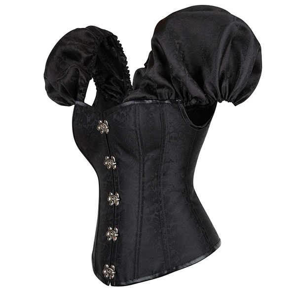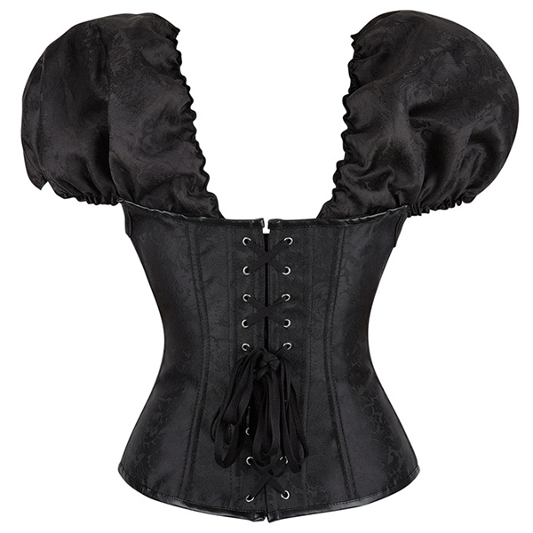 Gothic Style Jacquard Puff Short Sleeve Sweetheart Neckline Front Buckle Back Lace-up Corset Shirt