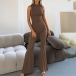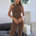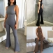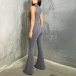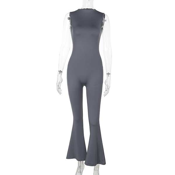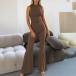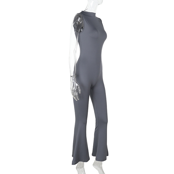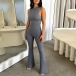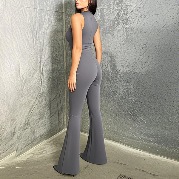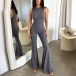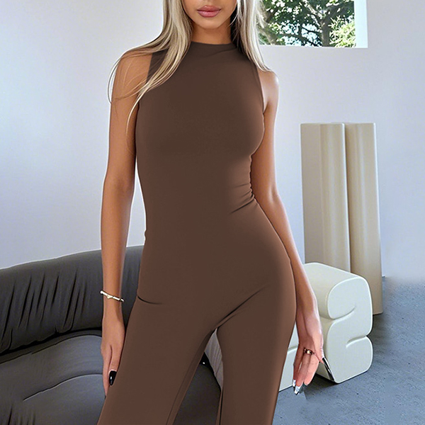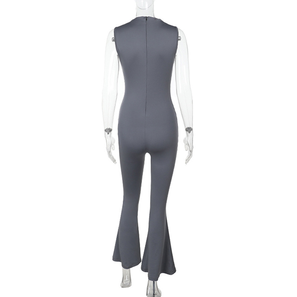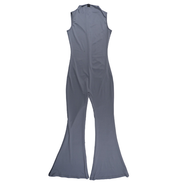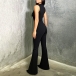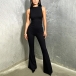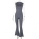 Half-High Collar Sleeveless Vest Jumpsuit with Flared Pants