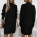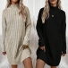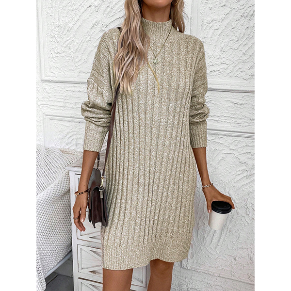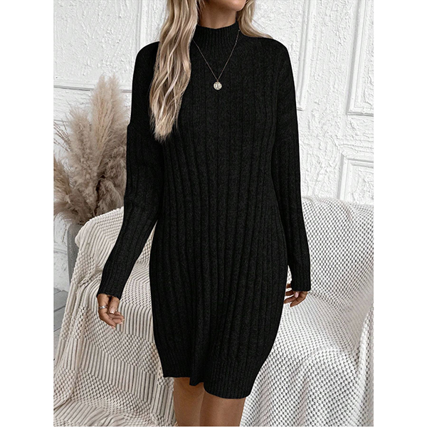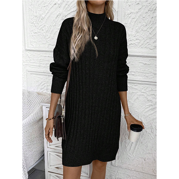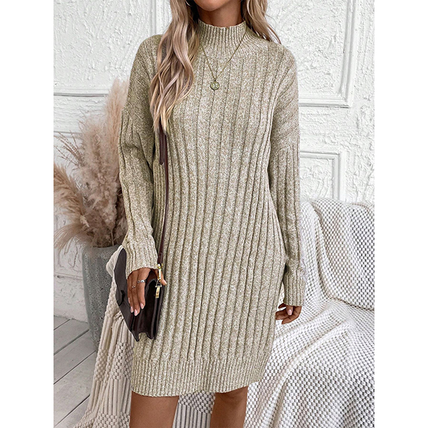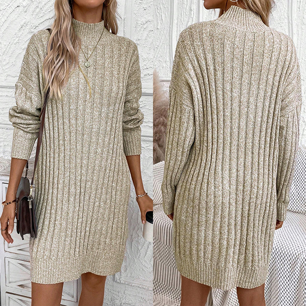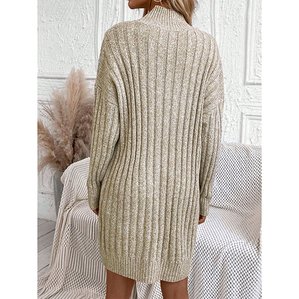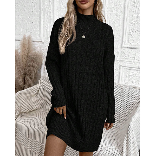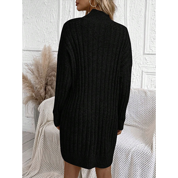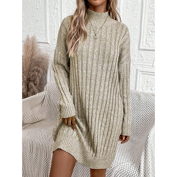 Fashion Mock Neck Long Sleeve Loose Knitted Sweater Dress