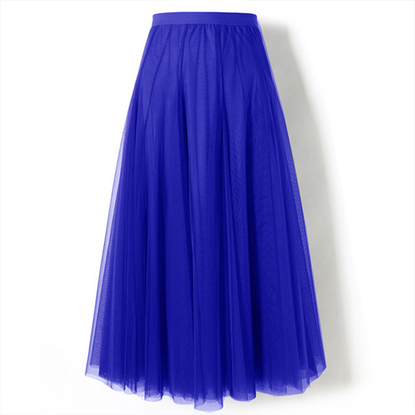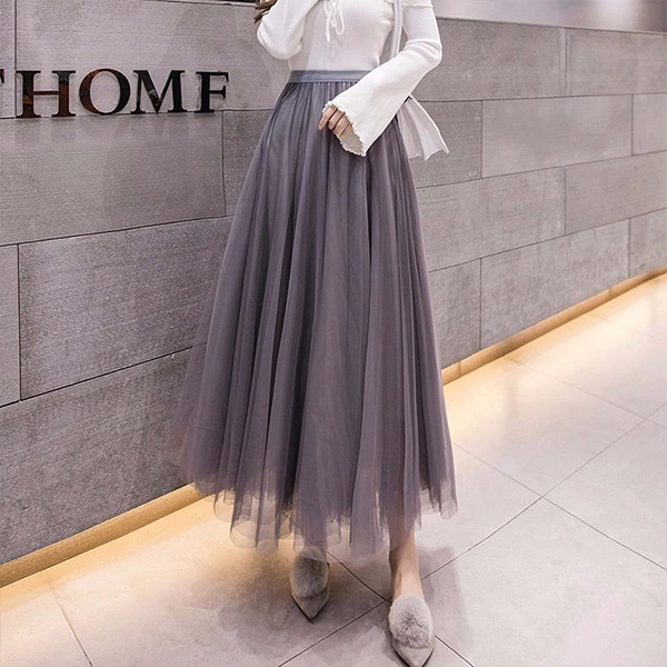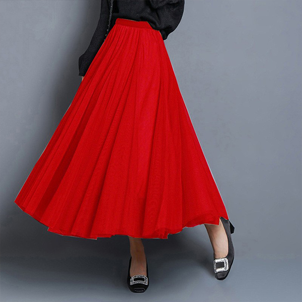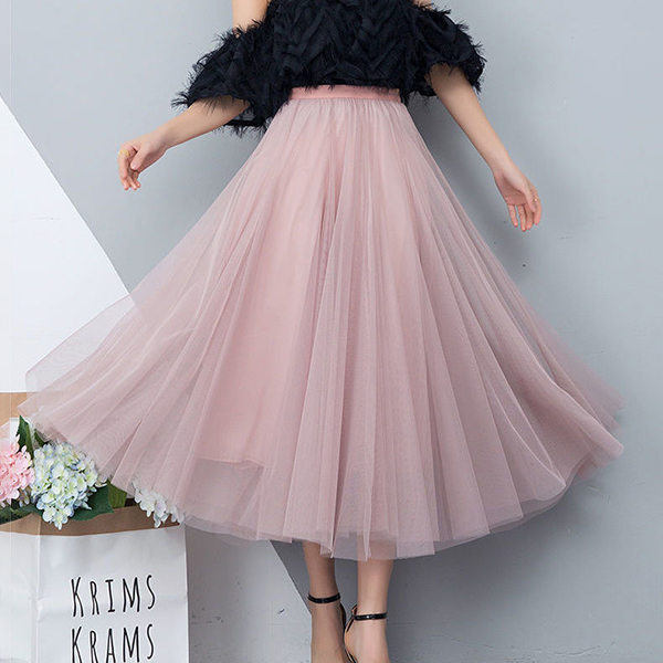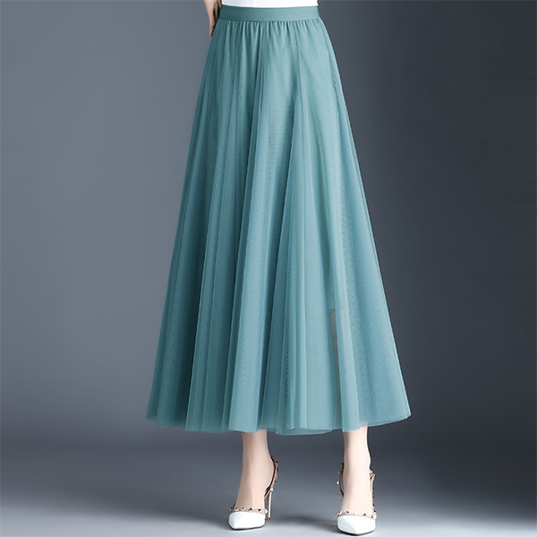 High-Waist Midi Skirt with A-Line Mesh Hem