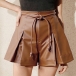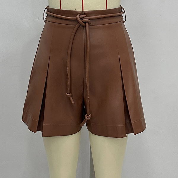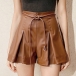 Fashion Pleated Self-tie High-rise Artificial Leather PU Shorts