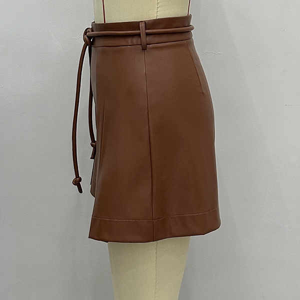 These Artificial Leather PU Shorts are a stylish and edgy piece that combines a trendy silhouette with a sleek leather-like fabric. The high-rise waist creates a flattering and elongating effect, accentuating your waist and giving you a chic and fashion-forward look. The pleated detailing adds texture and movement to the shorts, creating a dynamic and eye-catching silhouette. The self-tie belt allows you to adjust the fit of the shorts and cinch in your waist for a customized and flattering look.Pair them with a tucked-in blouse or a fitted top for a sleek and modern look, or style them with a graphic tee and sneakers for a casual and edgy ensemble.