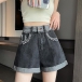 High Waist Retro Loose Fit Wide Leg Denim Hot Pants