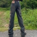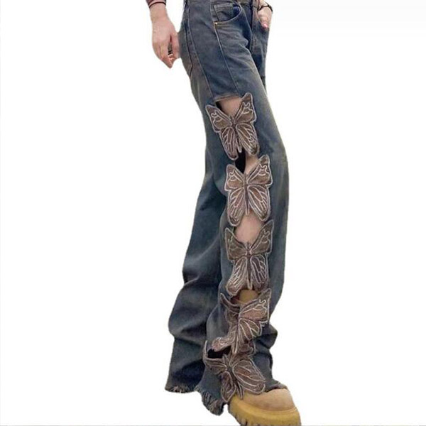 High Waist Wide Leg Trousers Retro Embroidered Hole Loose Fit Butterfly Print Hollow Out Pants