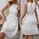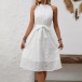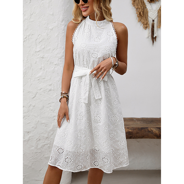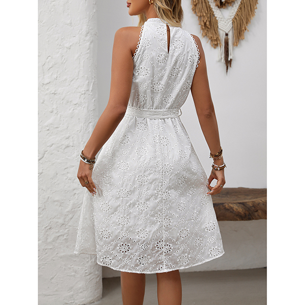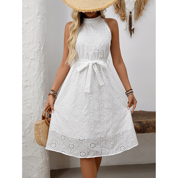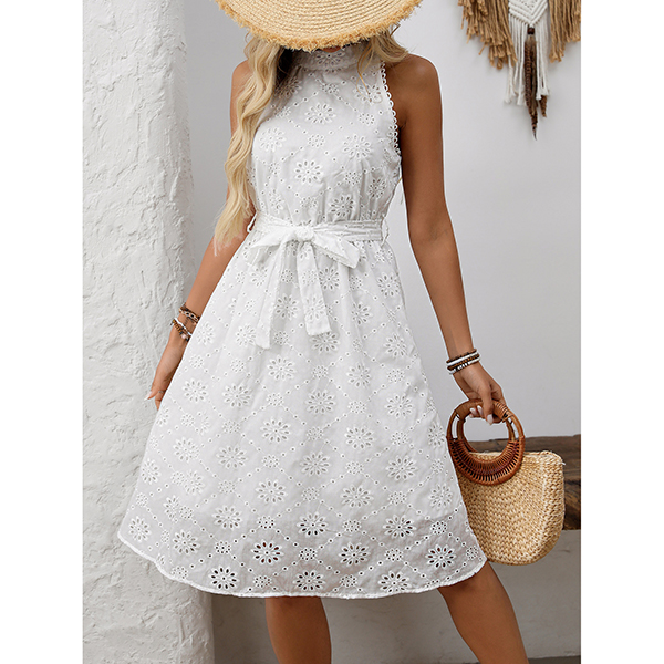 High Waisted Embroidered Halter Dress