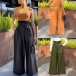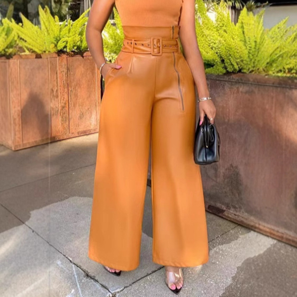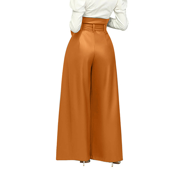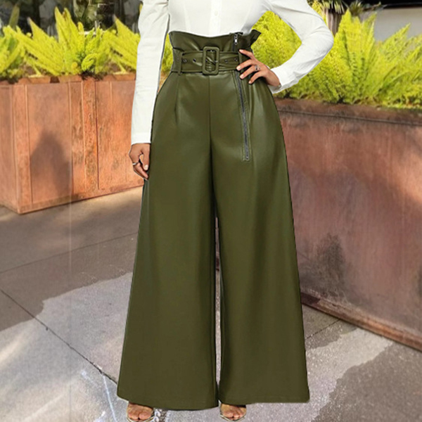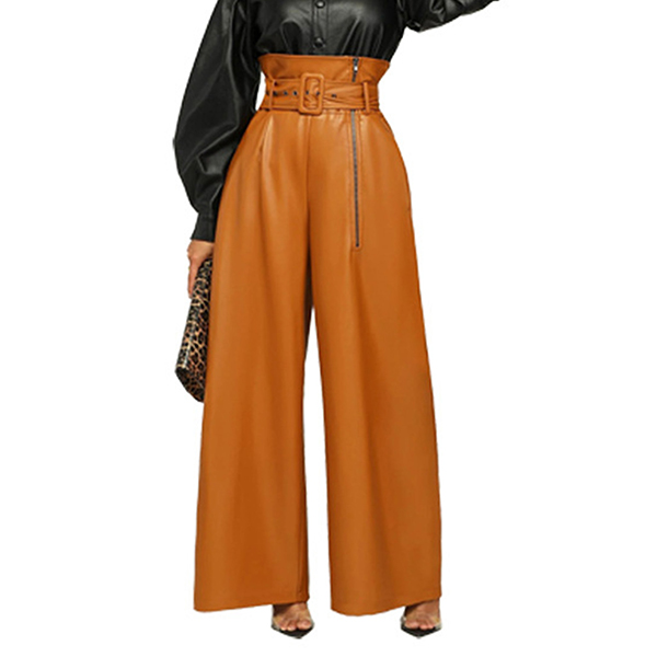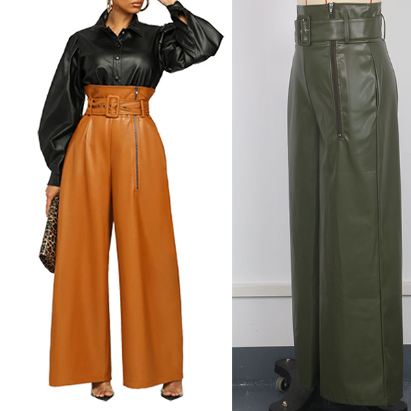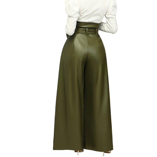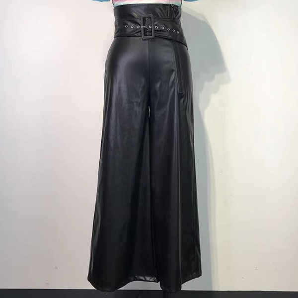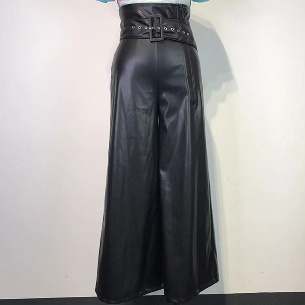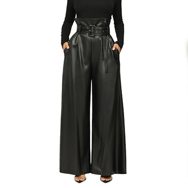 Fashion High-rise Wide-leg Artiicial Leather PU Pants with Belt