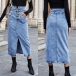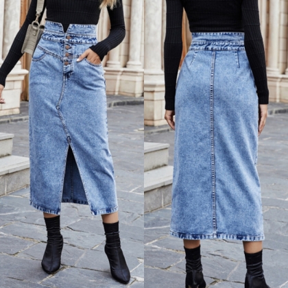 Fashion High-Waist Front Slit Denim Skirt