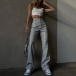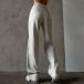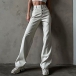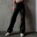 High-Waisted Solid Color PU Leather Straight Casual Pants