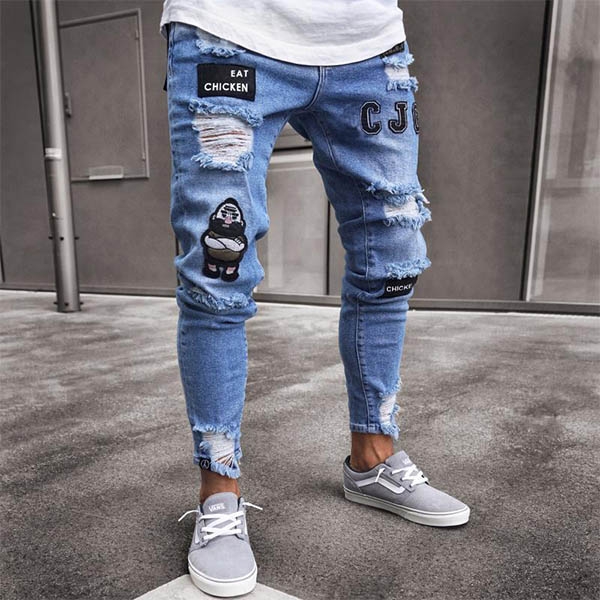 comfortable day. The embroidery spliced and ripped details make this piece look more attractive and distinctive.