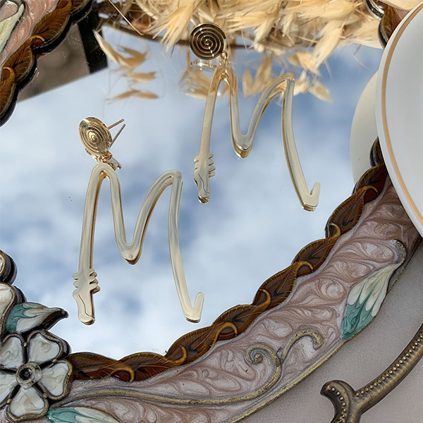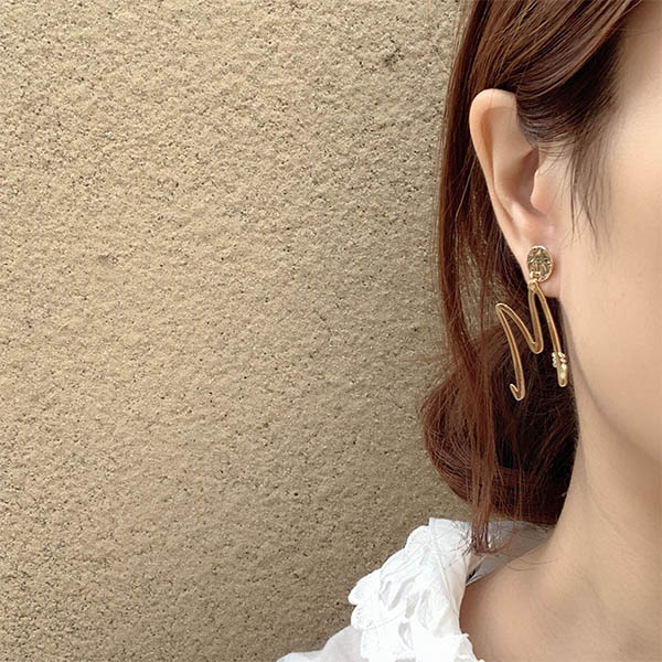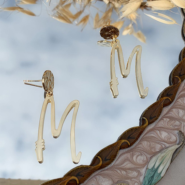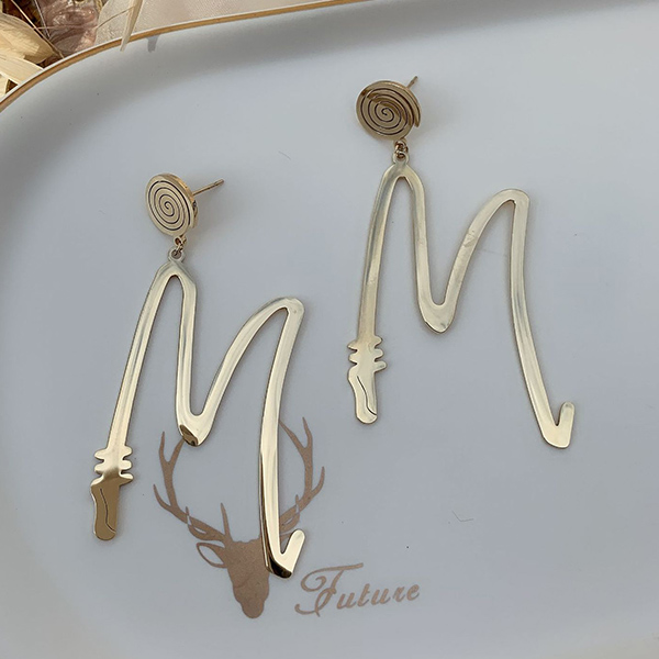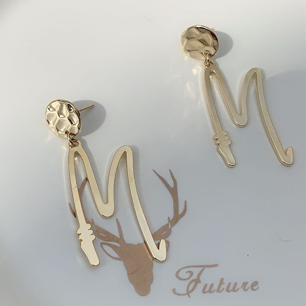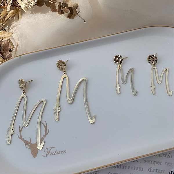 Embellish your ears with this pair of earrings. Letter "M" shaped design makes it look simple yet chic. You can boost your entire charm with these pieces.