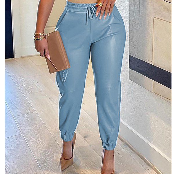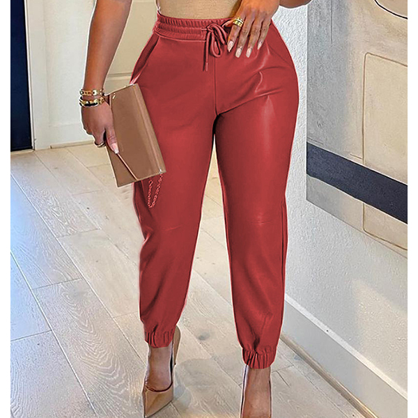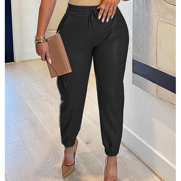 Hip-hop Style Solid Color Elastic Waist PU Leather Pants