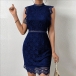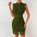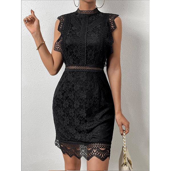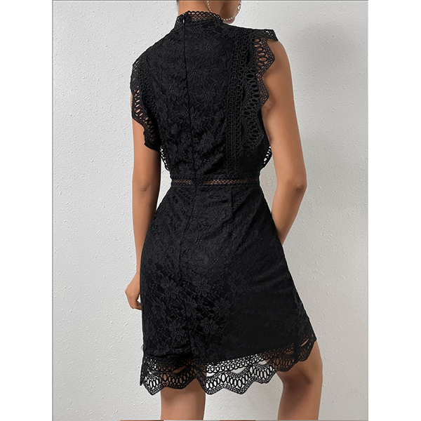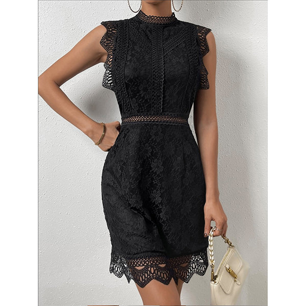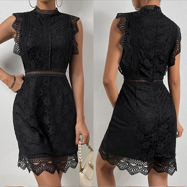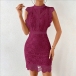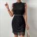 Fashion Mock Neck Sleeveless Jacquard Lace Dress