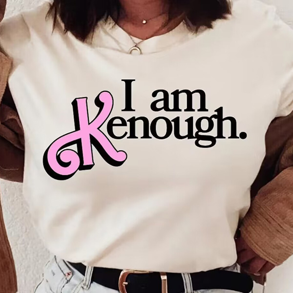I am Kenough-Letter Printed Round Neck Short Sleeve Shirt