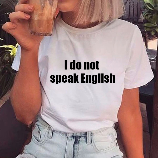 I do not speak English-Shirt with Round Neckline and Short Sleeve
