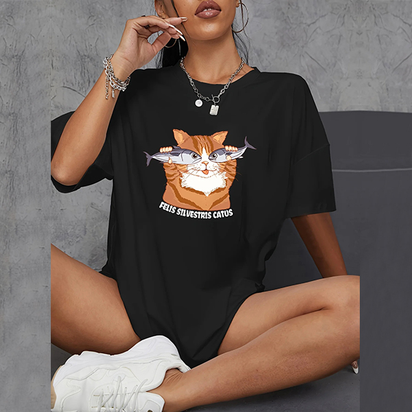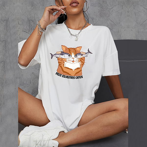 Kawaii Cat Shark Funny Cartoon Pattern T-Shirt