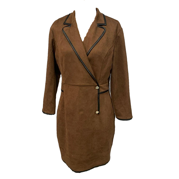 Knee-Length Office Dress with Long Sleeves and Lapel Collar Design