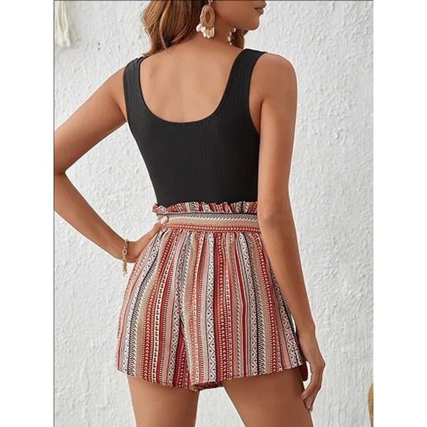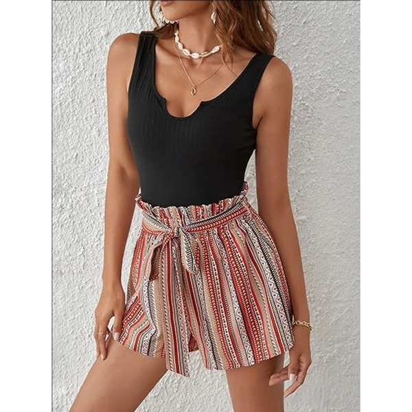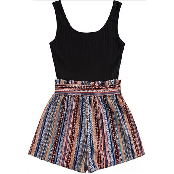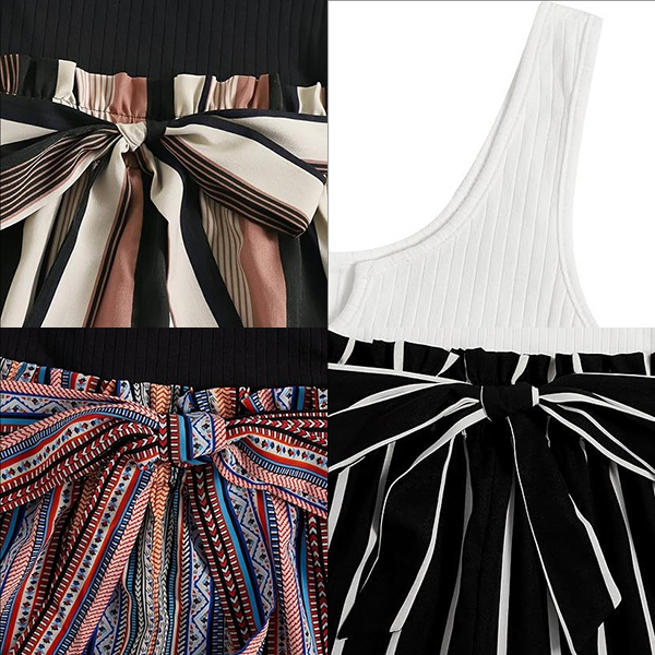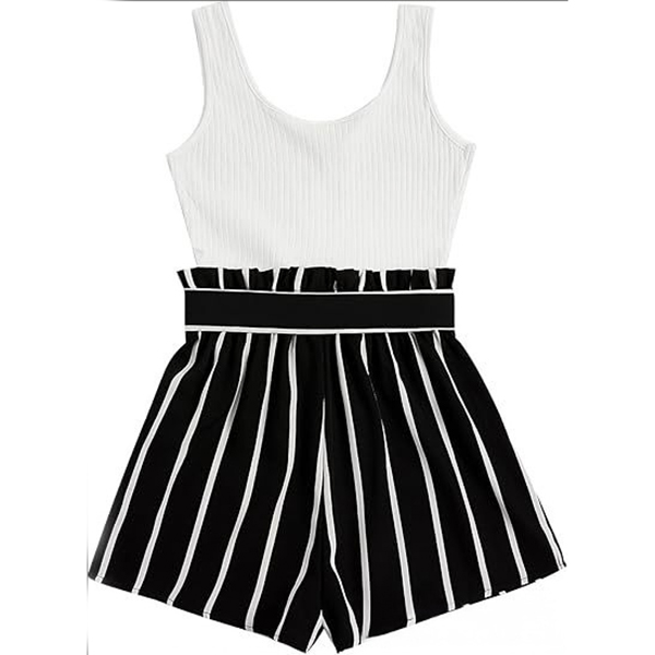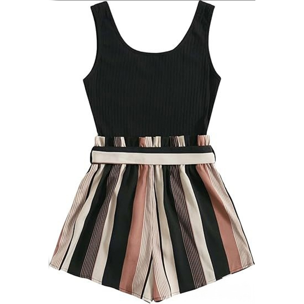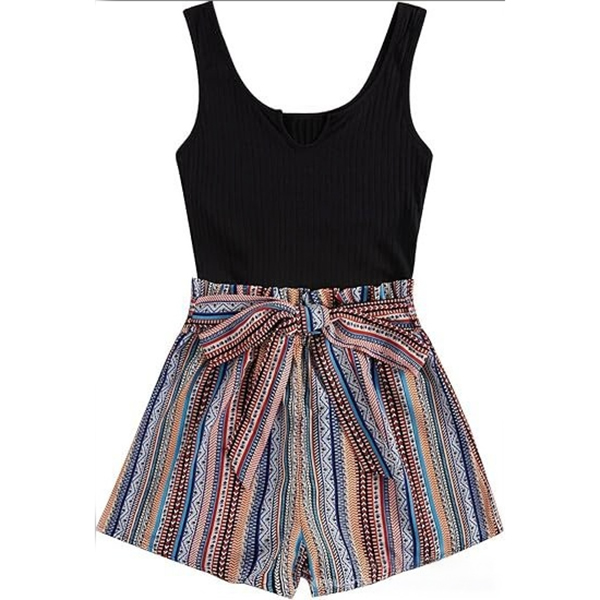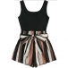 Fashion V-neck Sleeveless Self-tie Waist Verticial Stripe Printed Romper