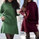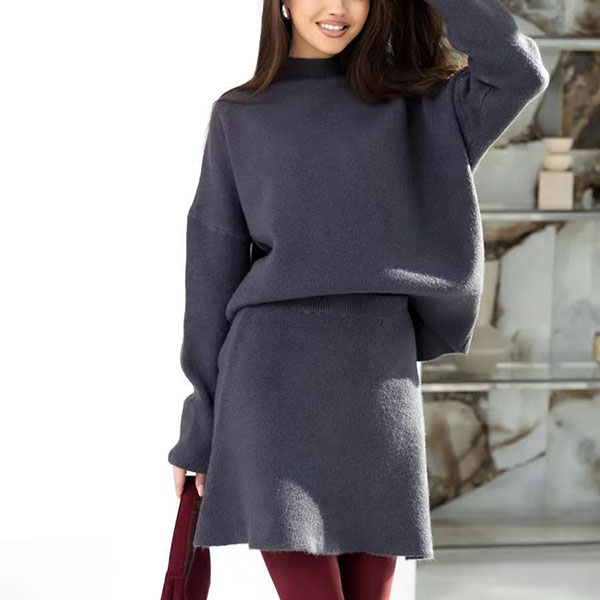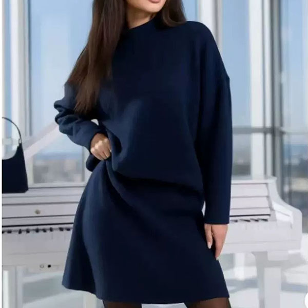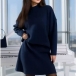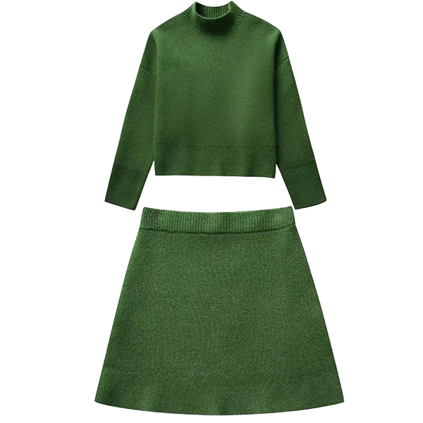 Knitted Two-Piece Suit featuring Half-High Collar Loose Top and A-Line Skirt