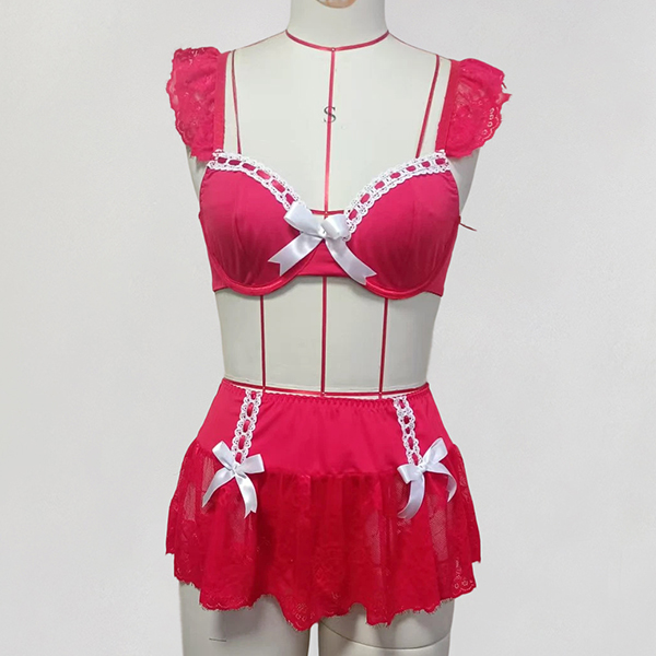 Fashion Contrast Color Bowknot Lace Two-piece Lingerie Set