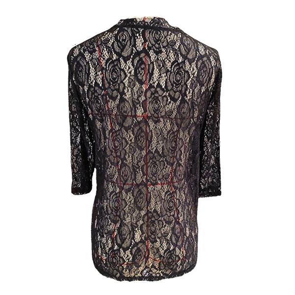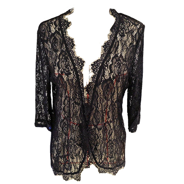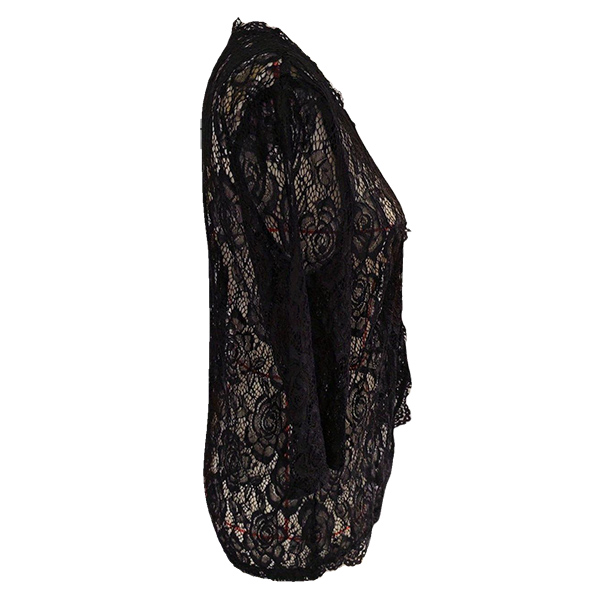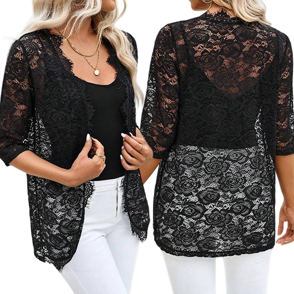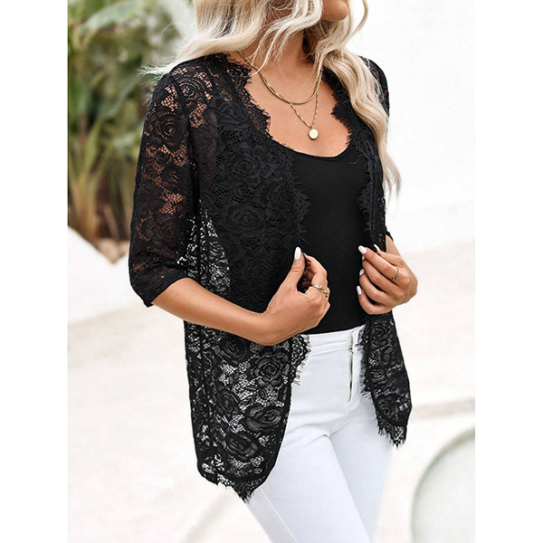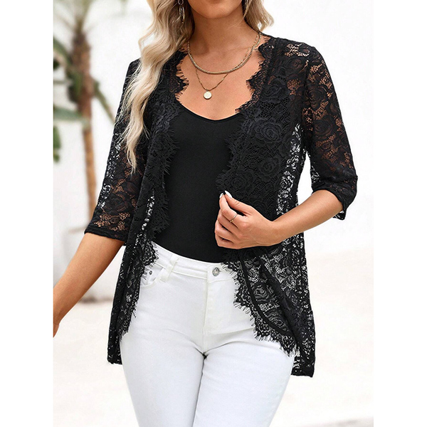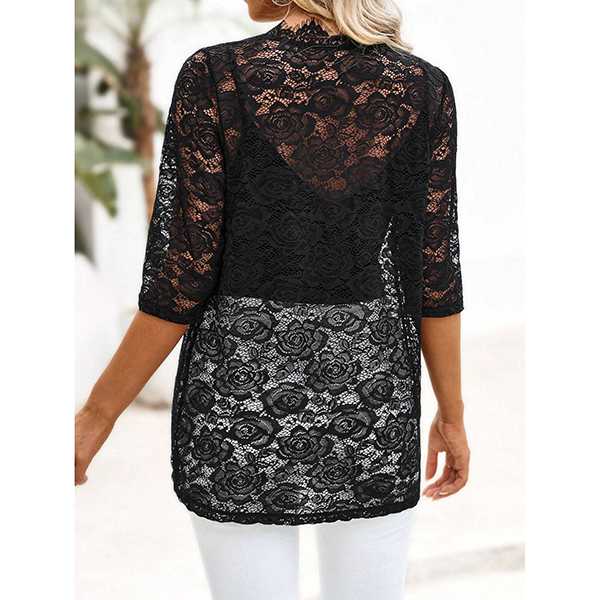 Lace Cardigan Top featuring Placket Design and Decorative Stitching