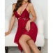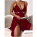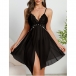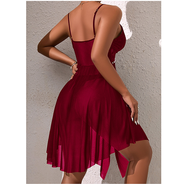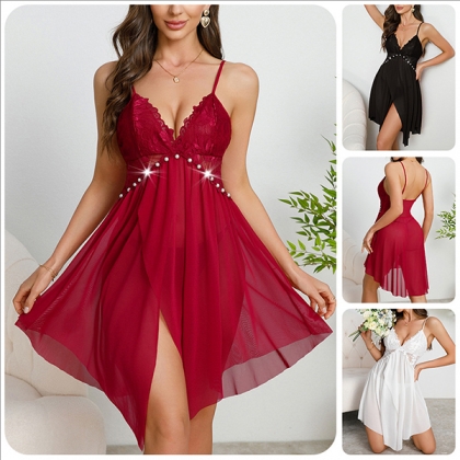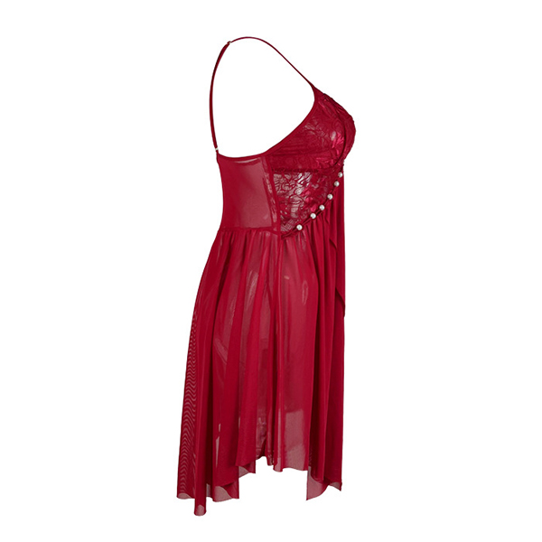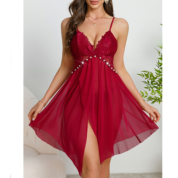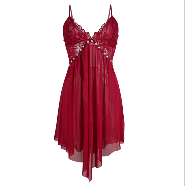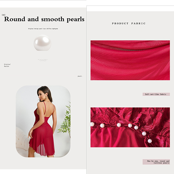 Lace Multicolor Suspender Nightdress with Pearl Embellishments and See-through Mesh Design