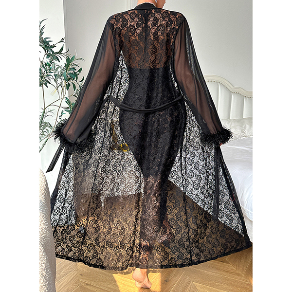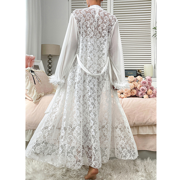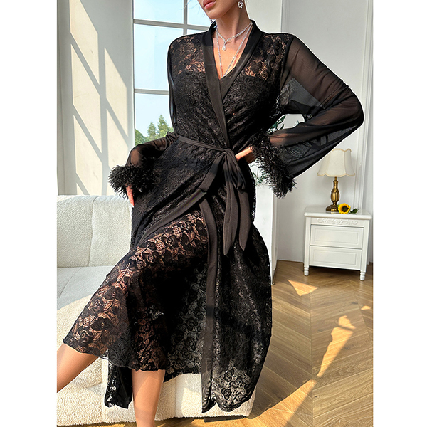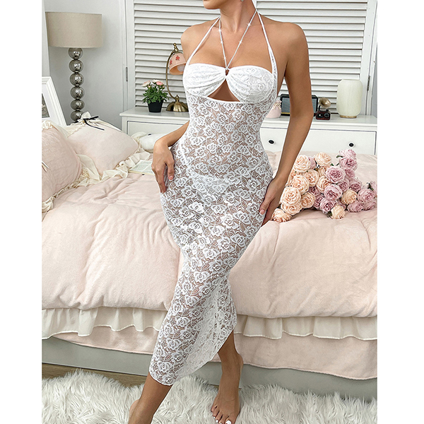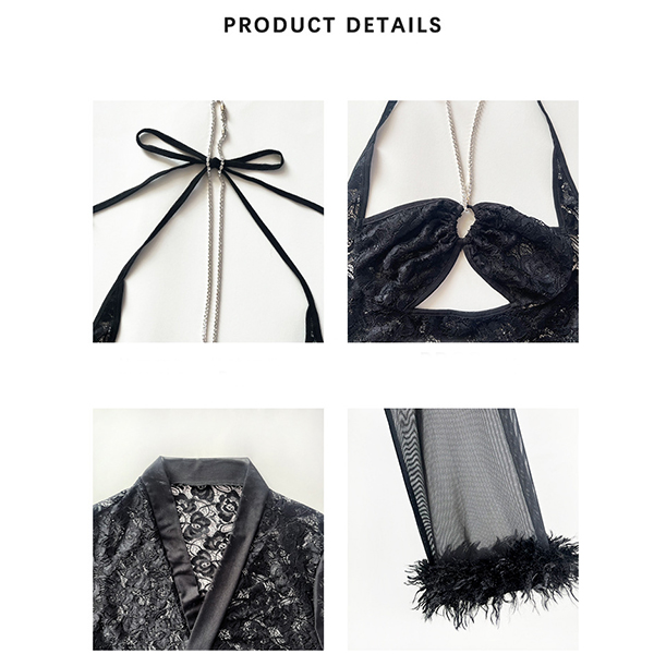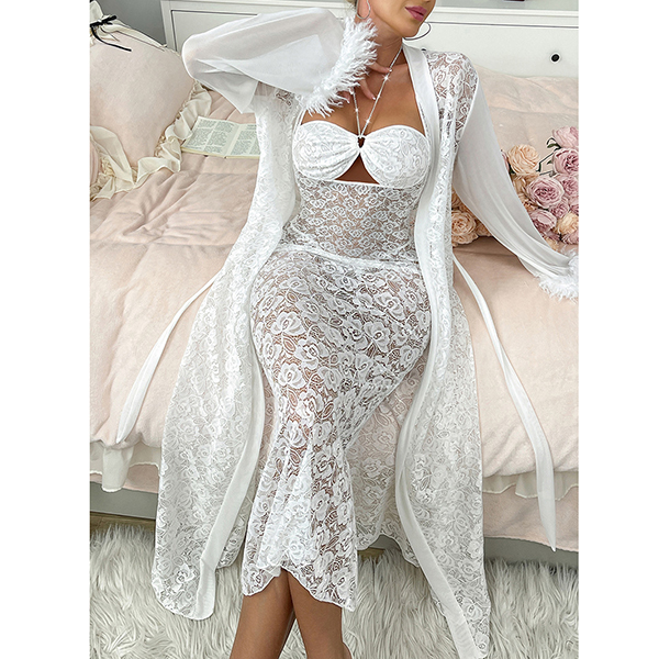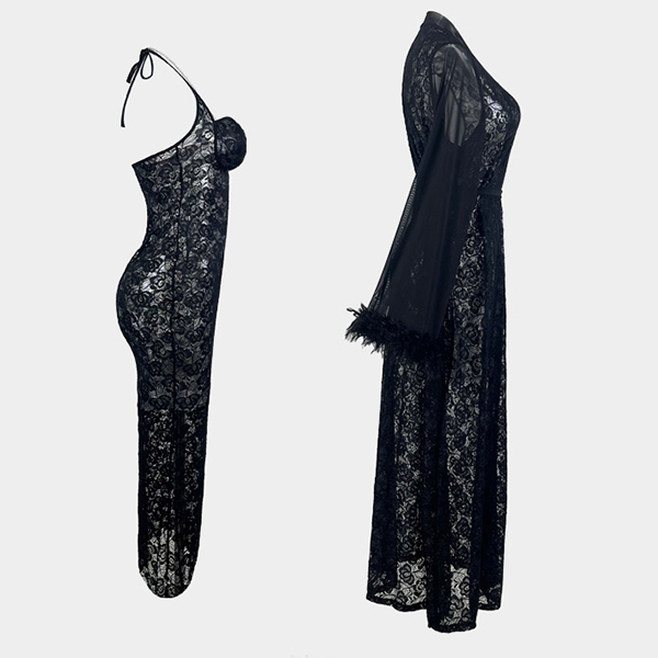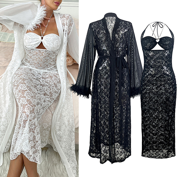 Fashion Two-piece Lace Nightwear Set Consist of Haterneck Bodycon Nightwear Dress and Robe