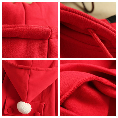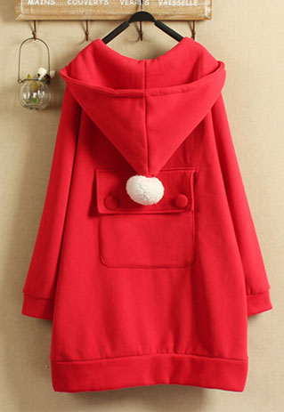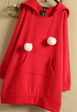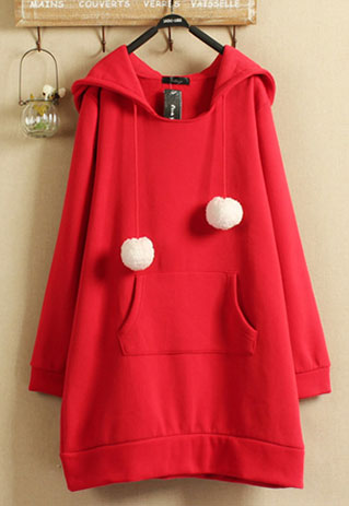 Loose Thicken Pompm Christmas Preppy Cute Red Hooded Long Sweatshirt