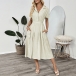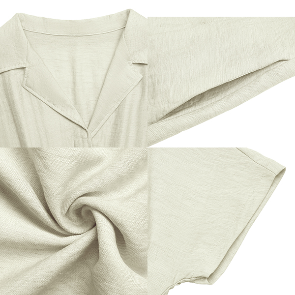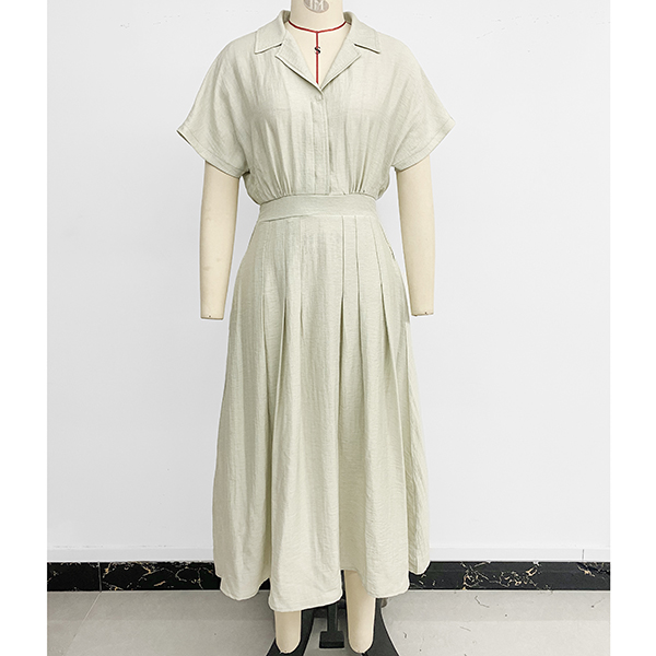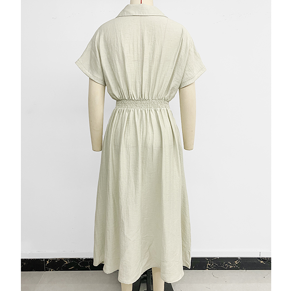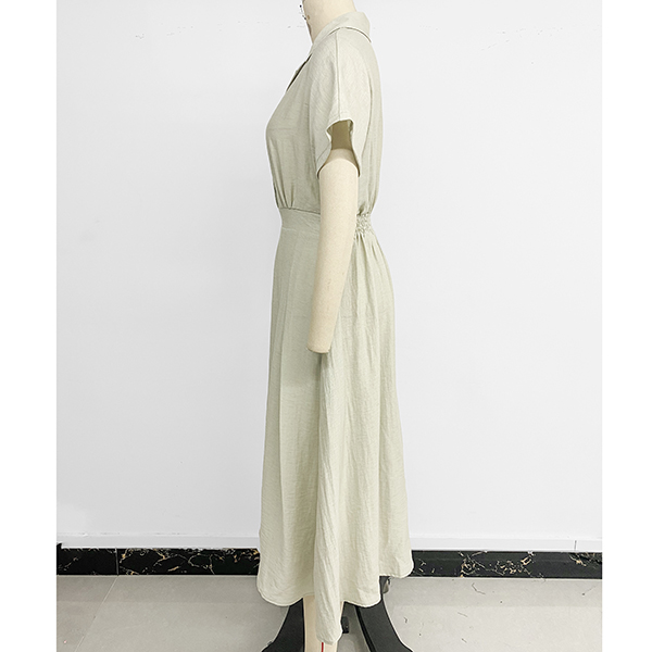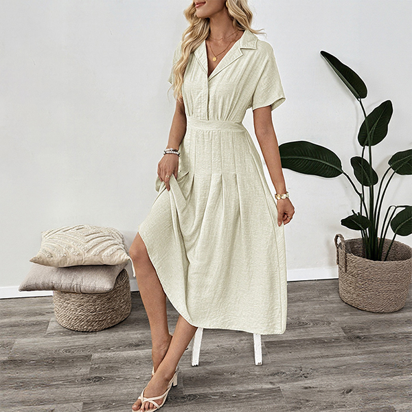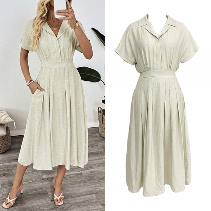 Fashion Notch Lapel Short Sleeve High-rise Side Pockets Midi Dress