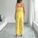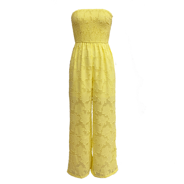 This sophisticated jumpsuit features vibrant lemon yellow styling with delicate floral lace construction and romantic strapless design for contemporary beach elegance. The lemon yellow colorway creates cheerful brightness with summer sophistication whilst the floral lace adds feminine textural beauty and artisanal charm throughout the flowing silhouette. Perfect for beach occasions, summer styling, or sophisticated resort coordination. Wanna have a try?