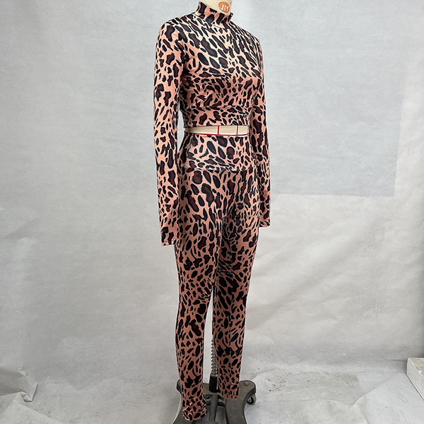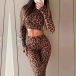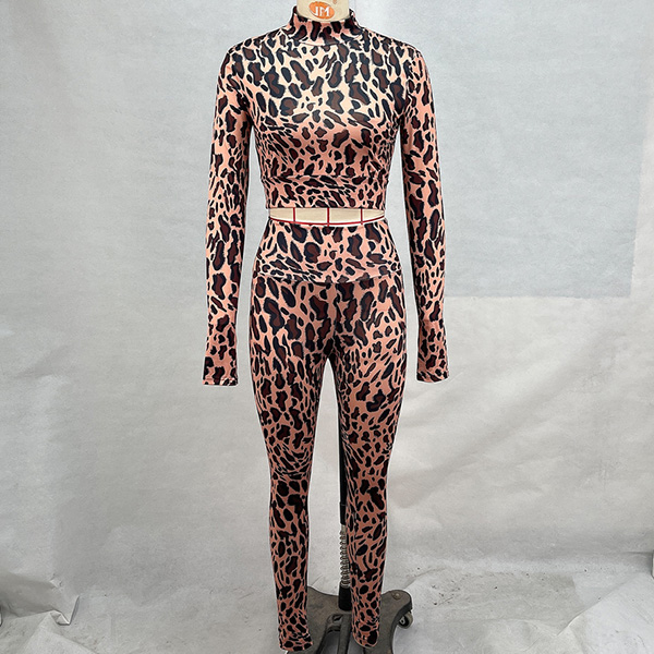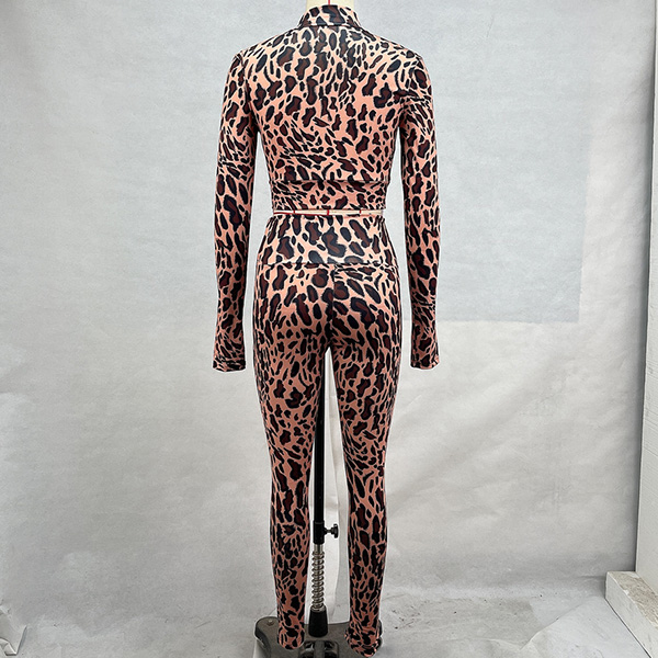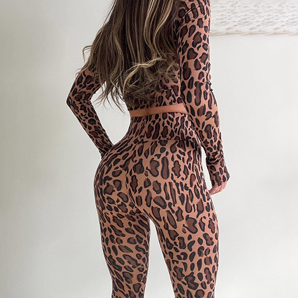 Leopard Print Crop Top and High-Waisted Yoga Pants Set