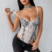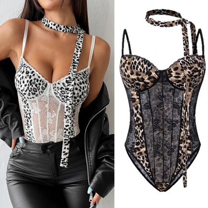 Sexy Leopard Print Lace Spliced Corset Bodysuit