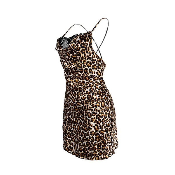 Leopard Print Nightdress with Lace Trim and Adjustable Straps
