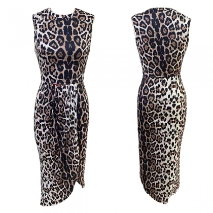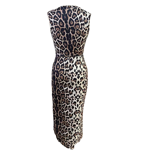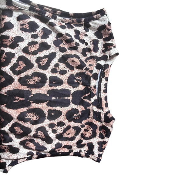 Leopard Print Pleated Skirt and Sleeveless Top Set with Cross Design