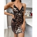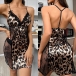 Leopard Print See-Through Nightdress Lingerie Two Piece Set