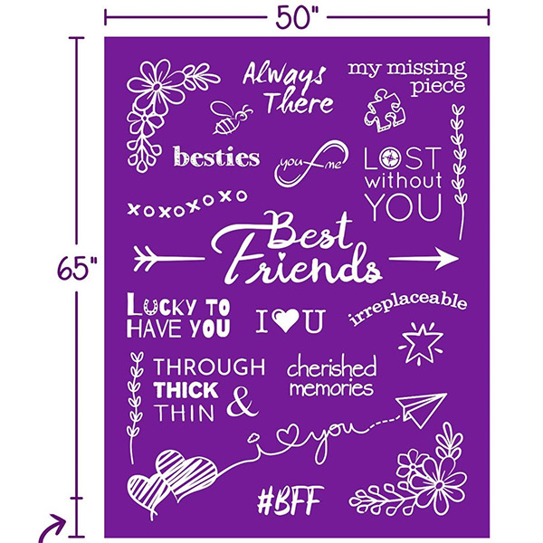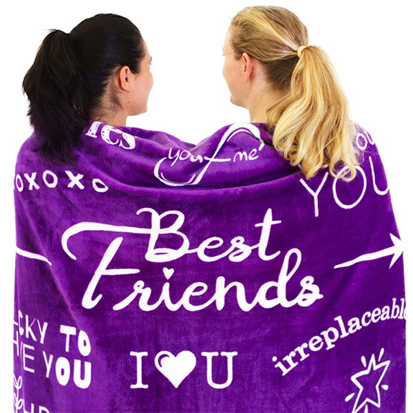 Made of microfiber. The both sides are flannel. It's super soft, high-quality, durable, and lightweight. This friends blanket accompanies you with warmth and softness. It is a wonderful gift for bestie. There is a specially designed accompanying greeting card where you can write your best wishes to your friends. It is perfect for camping, traveling, napping, playing, sleeping. Good coverage and wide applicability - Summer can be used as thin quilt, summer quilt; Winter can also be used as sheets, comfortable, soft and close-fitting.