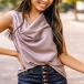 Combines of stylish and flirty vibes, this wonderful top is worth to arouse your attention. Draped Neckline, sleelvess and snake printed details, a perfect choice for this summer.