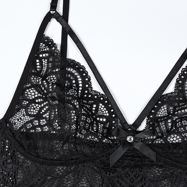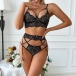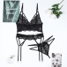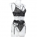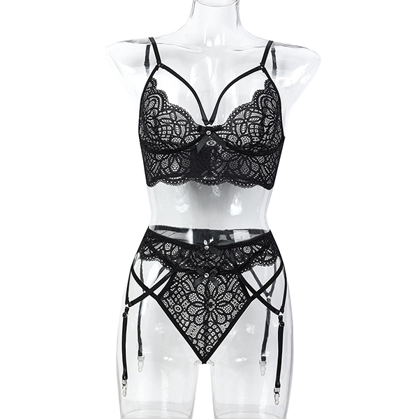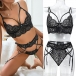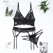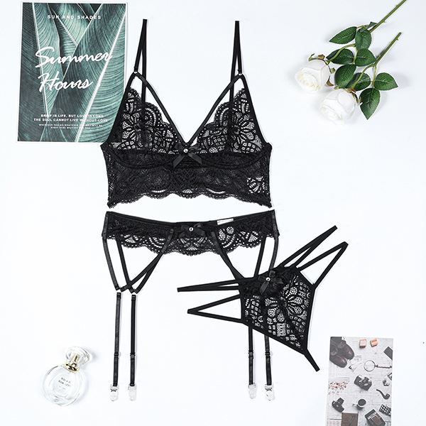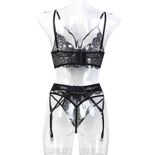 Lingerie Black Lace See-Through Three-Piece Garter French Thin Suit