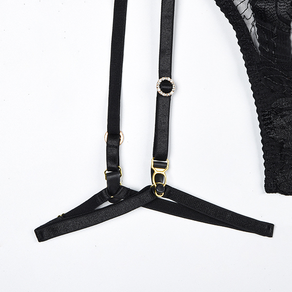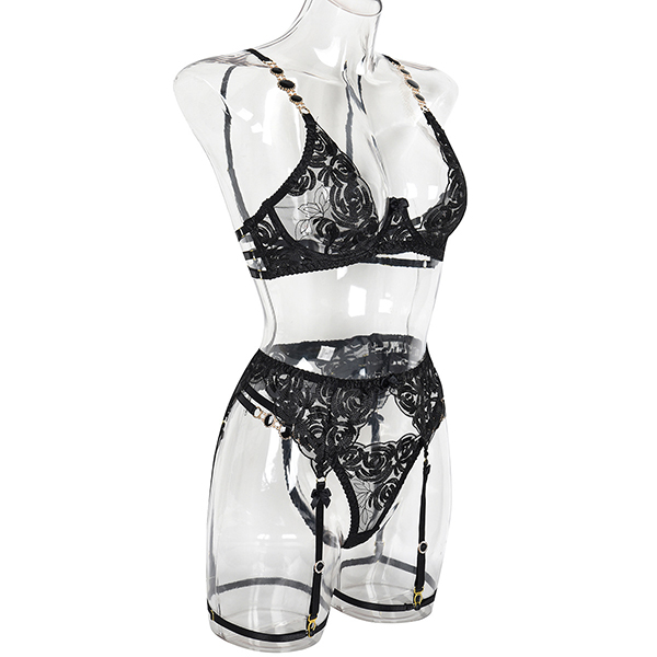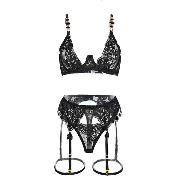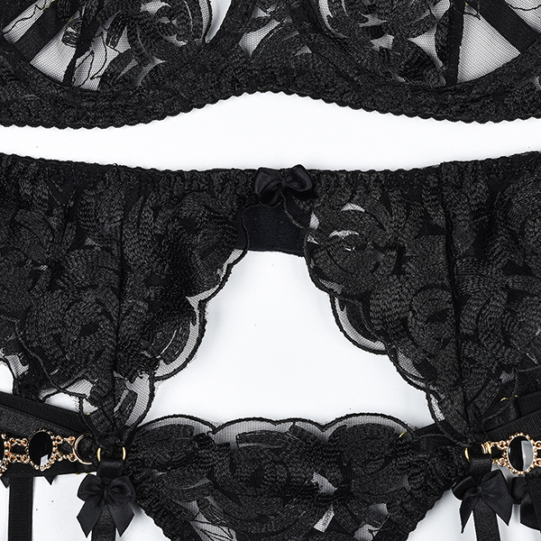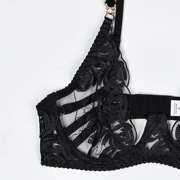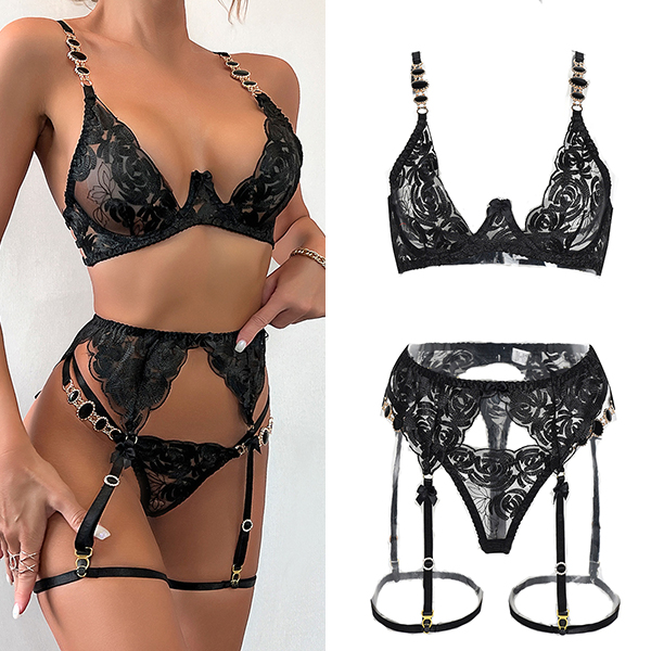 Lingerie Set featuring Push-Up Bra with Chain Embroidery