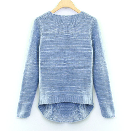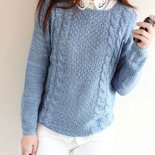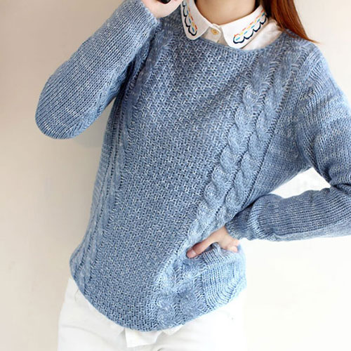 The design of this blue sweater is very simple and leisure. Its pure color make it looks simple but cute. The knit design makes it looks sweet and cute. Have one and you can on top of a Polo neckline blouse and pair with a tight pant and a pair of booties, with this ensemble, you will be one of the most leisure and cool one in the street.