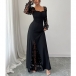 L-EU42=US12-14=UK/AU14-16 : Bust : 90cm(35.43"); Waist : 74cm(29.13"); Sleeve : 67.5cm(26.57"); Length : 127cm(50");