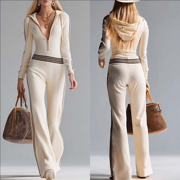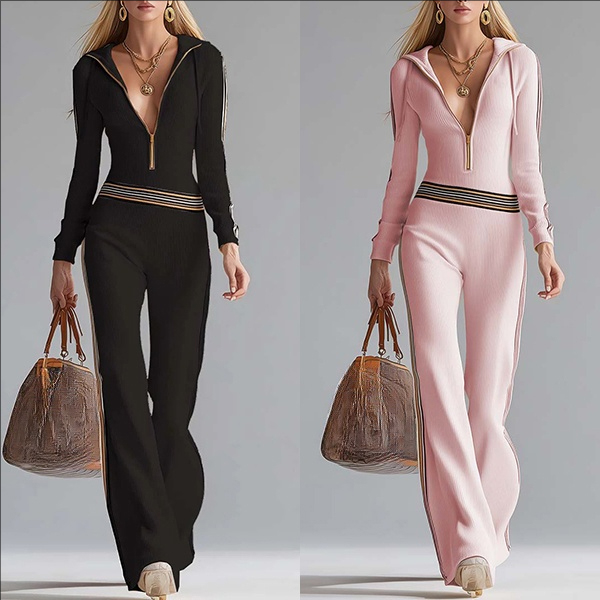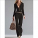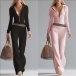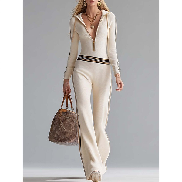 Long Sleeve Jumpsuit with Contrast Color Paneled Ribbed Knit