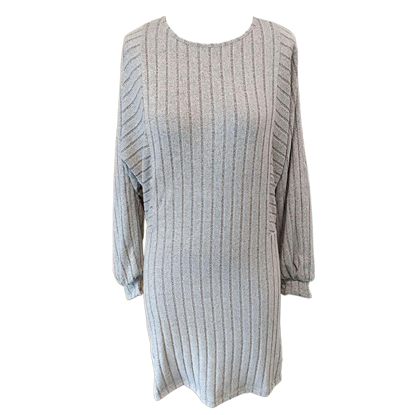 Fashion Solid Color Crew Neck Long Sleeve Ribbed Dress