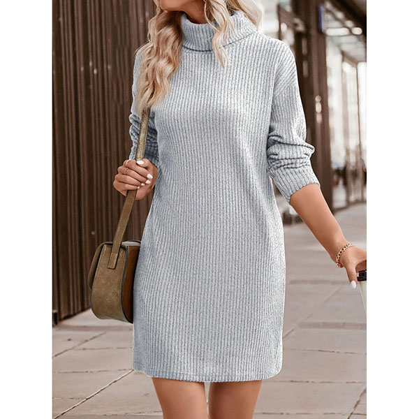 Long Sleeve Knitted Dress with Turtleneck