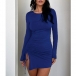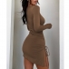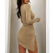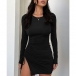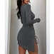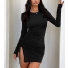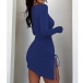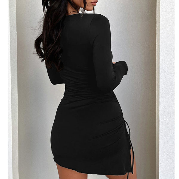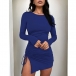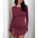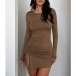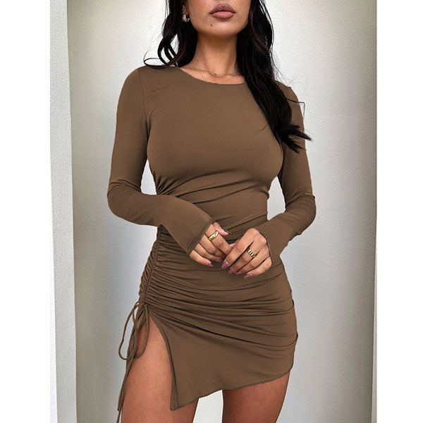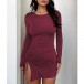 Long Sleeve Round Neck Dress with Drawstring Waist