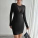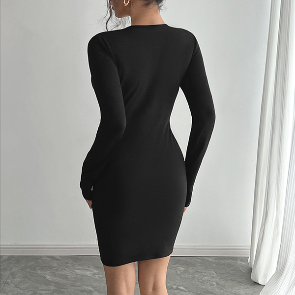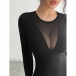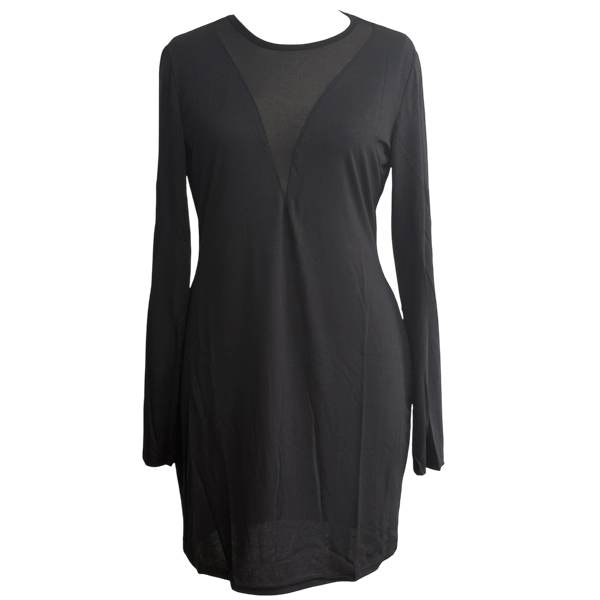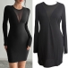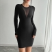 Fashion Mesh Spliced Crew Neck Long Sleeve Bodycon Dress