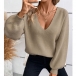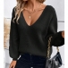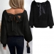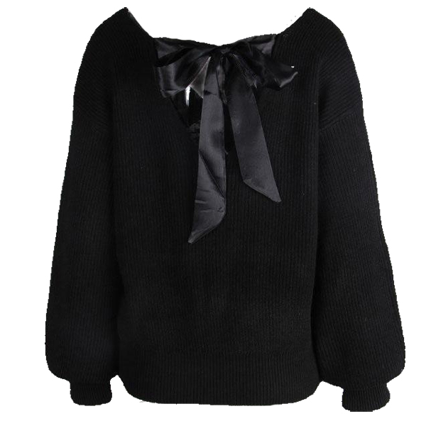 Long Sleeve V-Neck Sweater featuring Back Bow Design