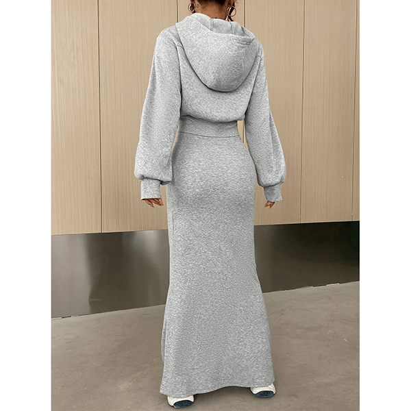 Long-Sleeved Short Cardigan and Slim Long Dress Two-Piece Outfit